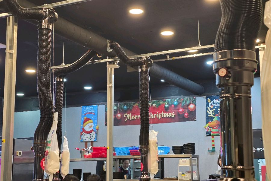 매장에 들어서는 순간, 레트로 감성이 물씬 풍기는 인테리어가 시선을 사로잡습니다. 마치 어린 시절 할머니 댁에 방문한 듯한 푸근함이 느껴집니다. 천장에는 연기를 빨아들이는 닥트가 거대한 문어처럼 늘어져 있고, 벽면에는 정겨운 그림과 소품들이 아늑한 분위기를 더합니다.