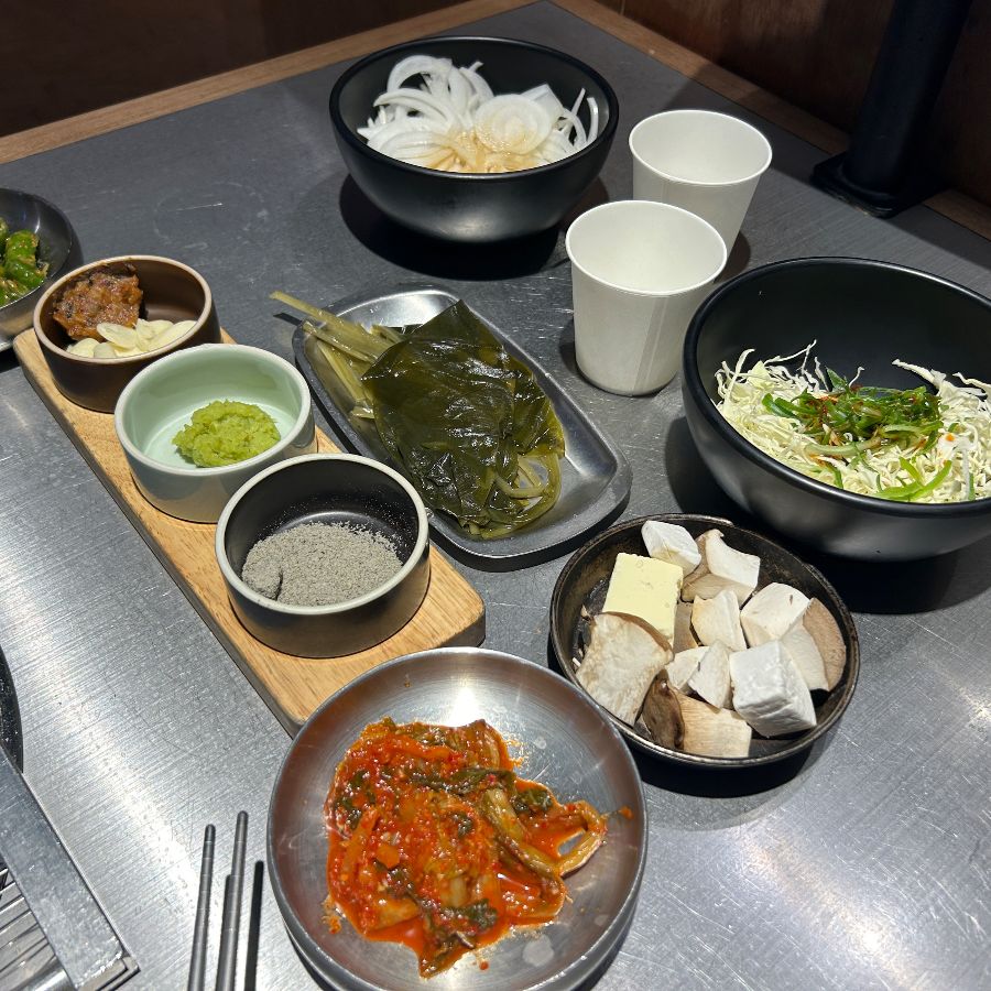 주문 후 얼마 지나지 않아 테이블 위로 다양한 밑반찬들이 하나 둘씩 세팅되기 시작했다. 쌈 채소, 깻잎 장아찌, 묵은지, 갓김치, 백김치 등 다채로운 구성에 감탄했다. 특히 멜젓과 갈치속젓은 돼지고기와 환상적인 조합을 자랑했다. 신선한 재료를 아낌없이 사용한 밑반찬들은 돈멜의 음식에 대한 진심을 느끼게 해주었다.