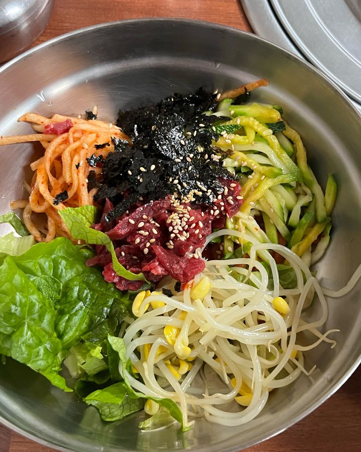 뿐만 아니라, 비빔밥에 들어가는 채소들도 하나하나 신선하고 아삭아삭했다. 갓 밭에서 따온 듯한 싱싱함은 육회와 완벽한 조화를 이루며 입안 가득 풍성한 맛을 선사했다.