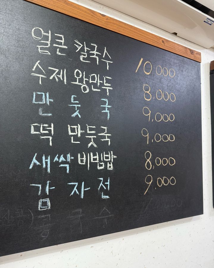 소박하지만 정겨움이 느껴지는 메뉴판, 암돌 속풀이 칼국수의 메뉴는 하나하나 정성이 느껴집니다.