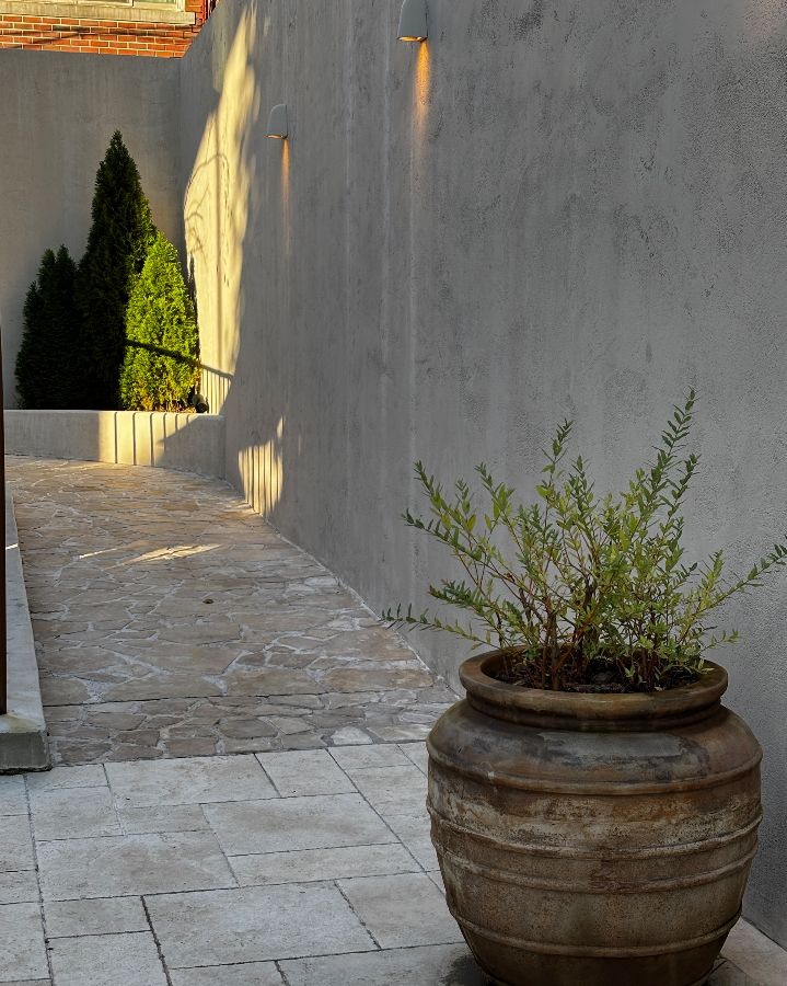돌담길과 푸른 정원수가 어우러진 스타벅스 장충라운지R점 외부
