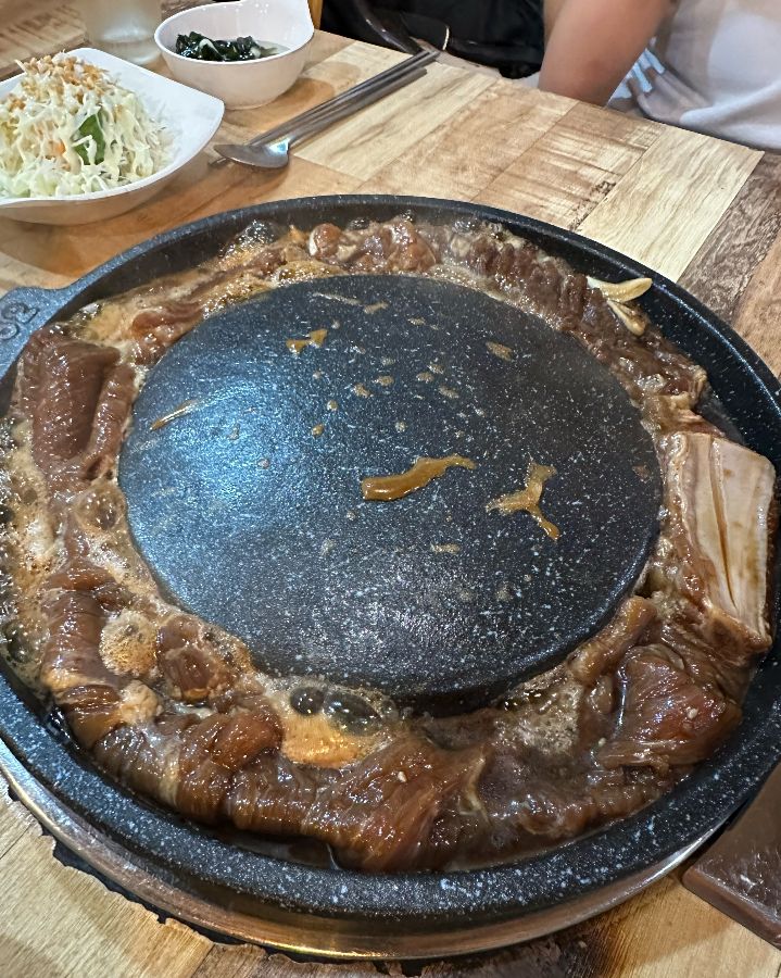 돼지갈비는 촉촉하게 졸여가면서 굽는 방식으로, 양념이 깊이 배어 있었다. 불판 위에 올려진 갈비는 지글지글 소리를 내며 맛있게 익어갔다. 아이들은 갈비가 익기만을 손꼽아 기다렸다. 노릇하게 익은 갈비를 한 입 크기로 잘라 아이들 접시에 놓아주니, 게 눈 감추듯 먹어 치웠다.
