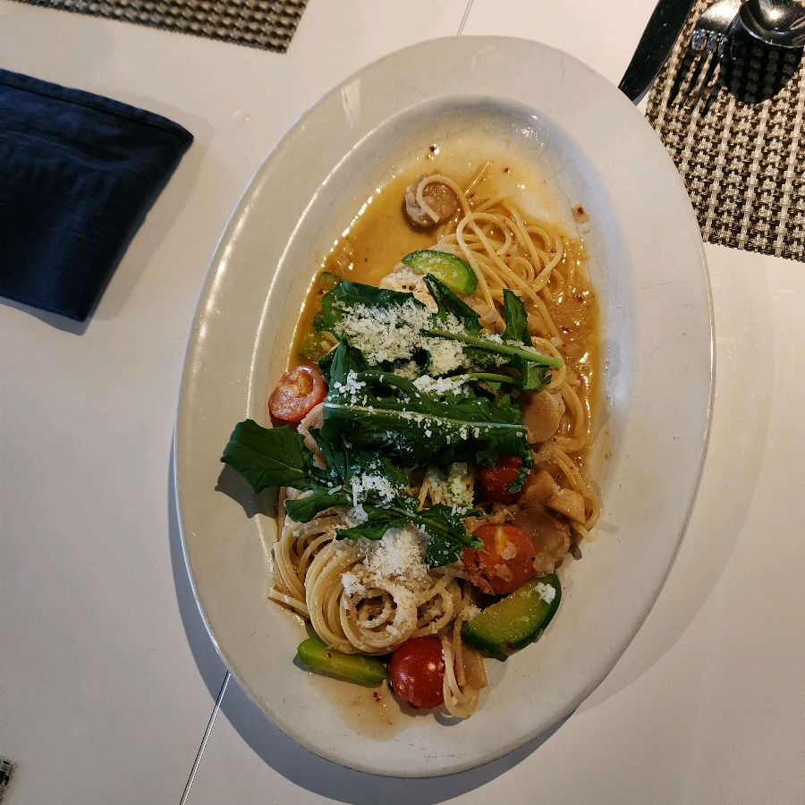 가장 먼저 등장한 메뉴는 해산물 오일 스파게티였습니다. 윤기가 자르르 흐르는 면발 위로 신선한 해산물이 듬뿍 올려져 있었습니다. 젓가락으로 돌돌 말아 한 입 맛보니, 입안 가득 퍼지는 바다 향이 황홀했습니다. 면은 어쩜 이리도 쫄깃한지, 탱글탱글 살아있는 식감이 정말 좋았습니다. 특히, 오일 소스의 깊은 풍미가 인상적이었습니다. 느끼함은 전혀 없이, 깔끔하면서도 감칠맛이 폭발했습니다.