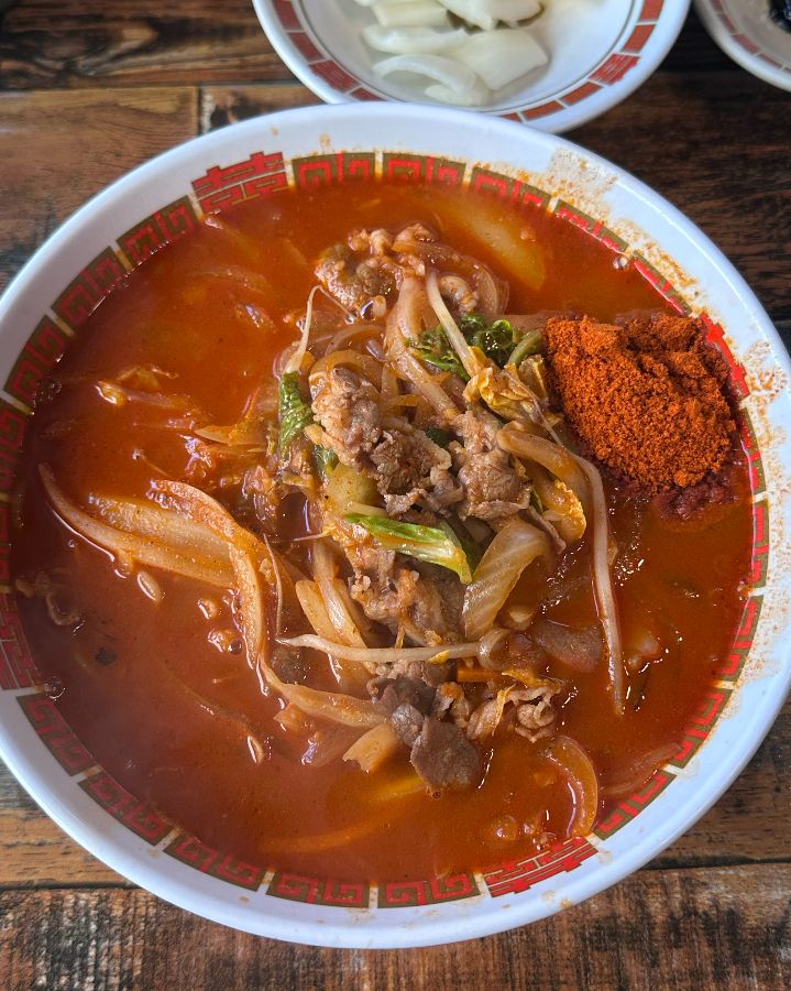면발은 또 어찌나 쫄깃하던지. 수타면 특유의 탱탱함이 살아있어, 씹는 재미를 더했다. 차돌박이는 부드럽고 고소했고, 신선한 채소들은 아삭아삭 씹히는 식감이 좋았다. 나는 정신없이 짬뽕을 흡입했다. 매운맛에 땀이 송골송골 맺혔지만, 멈출 수 없었다. 숟가락질을 멈추지 못하고, 국물 한 방울 남기지 않고 싹 비웠다.