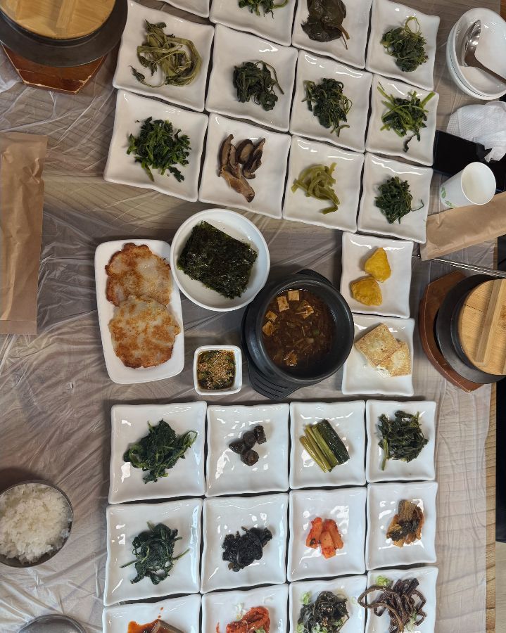 잠시 후, 상다리가 휘어질 듯한 산채정식 한 상이 차려졌다. 형형색색의 나물들이 작은 접시에 담겨 나왔는데, 그 종류만 해도 스무 가지가 훌쩍 넘어 보였다. 마치 작은 정원을 옮겨 놓은 듯한 모습에 감탄사가 절로 나왔다.