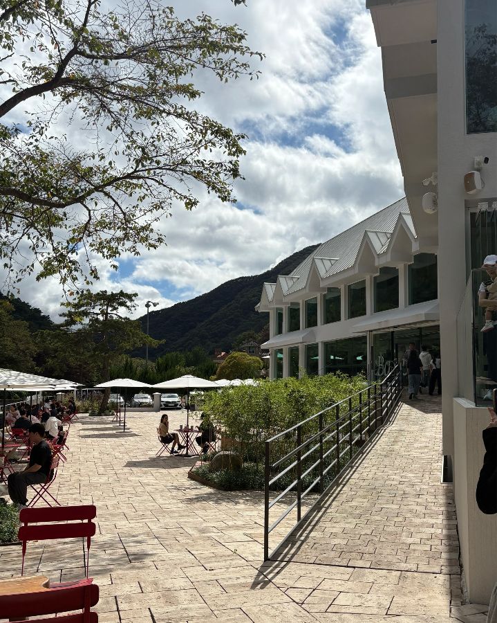 굽이굽이 산길을 따라 차를 몰아 도착한 백운. 첫인상은 웅장함 그 자체였다. 하얀 외관이 주변 풍경과 대비되며 더욱 눈에 띄었다. 넓은 주차장에 차를 세우고 카페를 향해 발걸음을 옮기는데, 마치 갤러리에 들어서는 듯한 기분이 들었다.