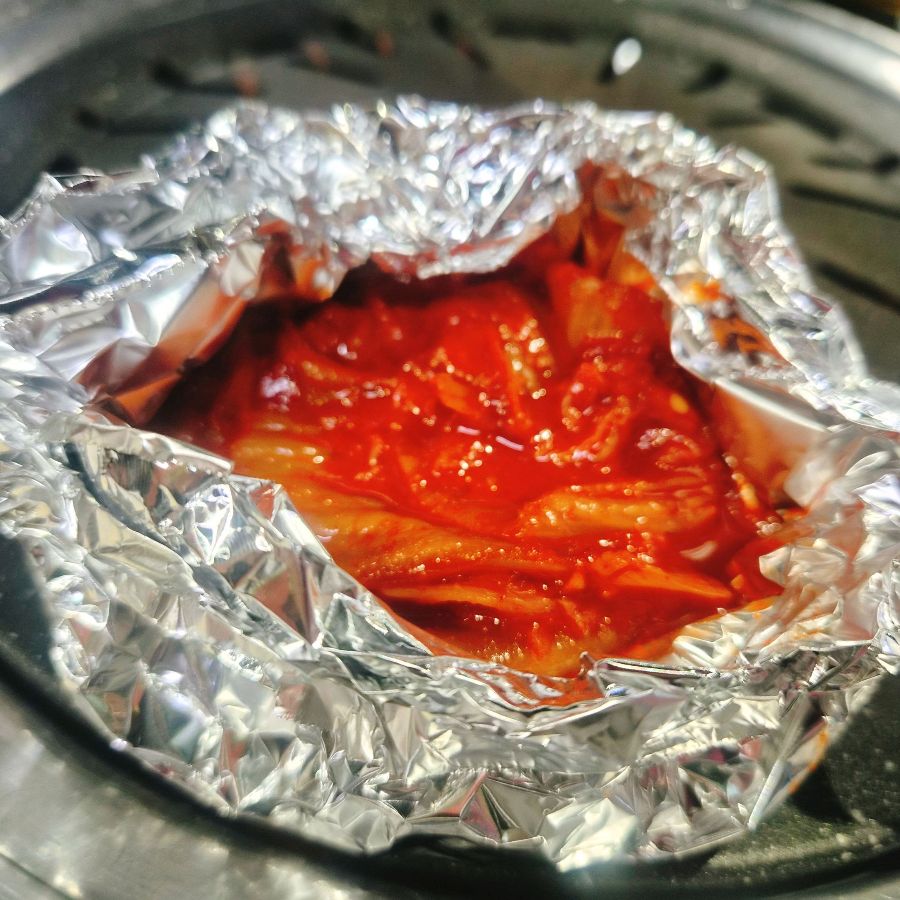 드디어 기다리고 기다리던 오겹살이 등장했다. 윤기가 좔좔 흐르는 오겹살의 자태는 보는 것만으로도 행복감을 선사했다. 불판 위에 오겹살을 올리자, 지글거리는 소리와 함께 고소한 냄새가 코를 찔렀다. 능숙한 솜씨로 오겹살을 굽고, 노릇하게 익은 오겹살 한 점을 신김치와 함께 입에 넣으니, 그 맛은 가히 환상적이었다. 쫀득한 오겹살과 새콤하게 익은 신김치의 조화는, 그야말로 입 안에서 펼쳐지는 황홀한 축제였다.