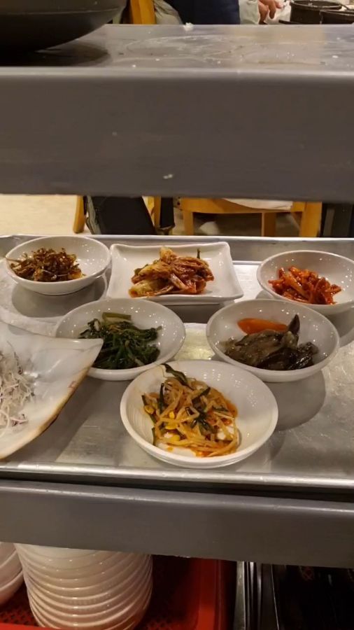 주문을 마치자, 밑반찬들이 하나둘씩 테이블 위로 차려졌다. 쟁반 가득 담겨 나온 밑반찬들은 하나하나 정갈하고 먹음직스러워 보였다. 신선한 쌈 채소부터 시작해서, 샐러드, 김치, 나물 등 종류도 다양했다. 특히, 제철 음식을 사용한 반찬들은 계절마다 바뀐다고 하니, 더욱 기대가 되었다. 반찬은 셀프 코너에서 맘껏 가져다 먹을 수 있다는 점도 마음에 들었다.