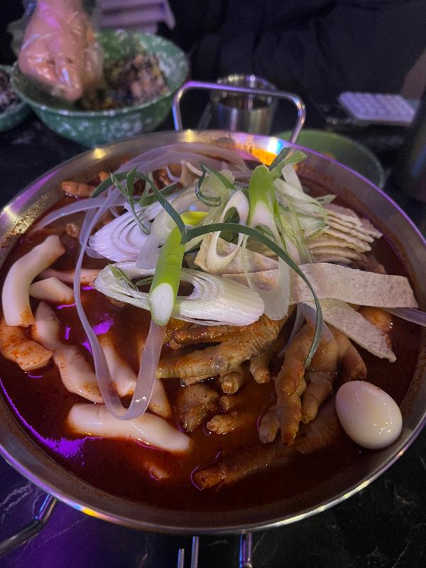 국물이 끓기 시작하자, 직원분께서 오셔서 닭발을 먹기 좋게 잘라주셨다. 덕분에 더욱 편안하게 식사를 즐길 수 있었다. 국물이 어느 정도 졸아들자, 드디어 닭발을 맛볼 차례. 젓가락으로 닭발 하나를 집어 들었다. 닭발은 탱글탱글하고 큼지막했다. 입안에 넣으니 야들야들한 껍질과 쫄깃한 살이 환상적인 조화를 이루었다.