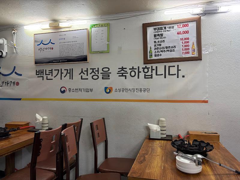 가게 문을 열고 들어서니, 아늑하면서도 정겨운 분위기가 물씬 풍겼다. 테이블은 적당한 간격으로 배치되어 있었고, 벽에는 ‘백년가게 선정’을 축하하는 현수막이 걸려 있었다. 은은한 조명이 따뜻하게 감싸는 공간은 편안한 식사를 기대하게 만들었다. , 참고)