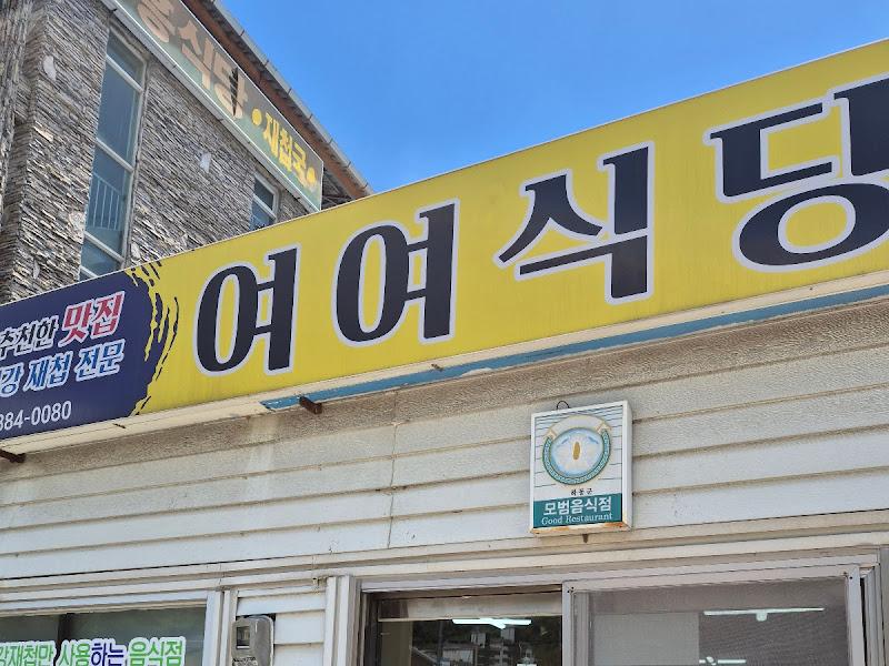 세월의 흔적이 느껴지는 ‘여여식당’ 간판. ‘모범음식점’ 마크가 신뢰감을 더한다.