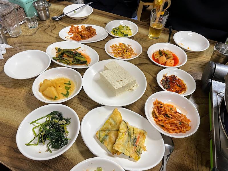 주문을 마치자마자 기다렸다는 듯이 밑반찬들이 쏟아져 나왔다. 마치 잘 차려진 한정식집에 온 듯, 테이블 가득 다양한 종류의 반찬들이 빈틈없이 놓였다. 윤기가 자르르 흐르는 잡채, 매콤한 냄새가 코를 자극하는 볶음김치, 짭짤한 간장으로 맛을 낸 꽈리고추 멸치볶음, 싱싱한 오이와 양파를 새콤달콤하게 무쳐낸 오이무침, 그리고 슴슴하게 간이 밴 감자조림까지. 하나하나 정갈하게 담겨 나온 반찬들은 보기만 해도 군침이 돌았다. 마치 시골 할머니가 손수 만들어주신 듯한 푸근한 비주얼이었다.