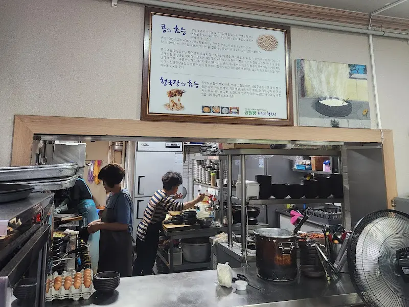 잠시 후, 기다리고 기다리던 청국장과 비지찌개가 뚝배기에 담겨 나왔다. 보글보글 끓는 모습과 함께 코를 찌르는 구수한 냄새. 정말이지 환상적인 조합이었다. 먼저 청국장부터 한 숟가락 떠서 맛을 보았다. 음… 깊고 진한 맛은 좋았지만, 희미하게 쓴맛이 느껴졌다.