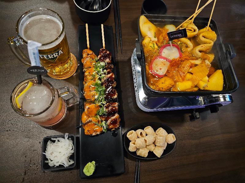 오뎅 나베와 닭꼬치는 술안주로 제격이다.