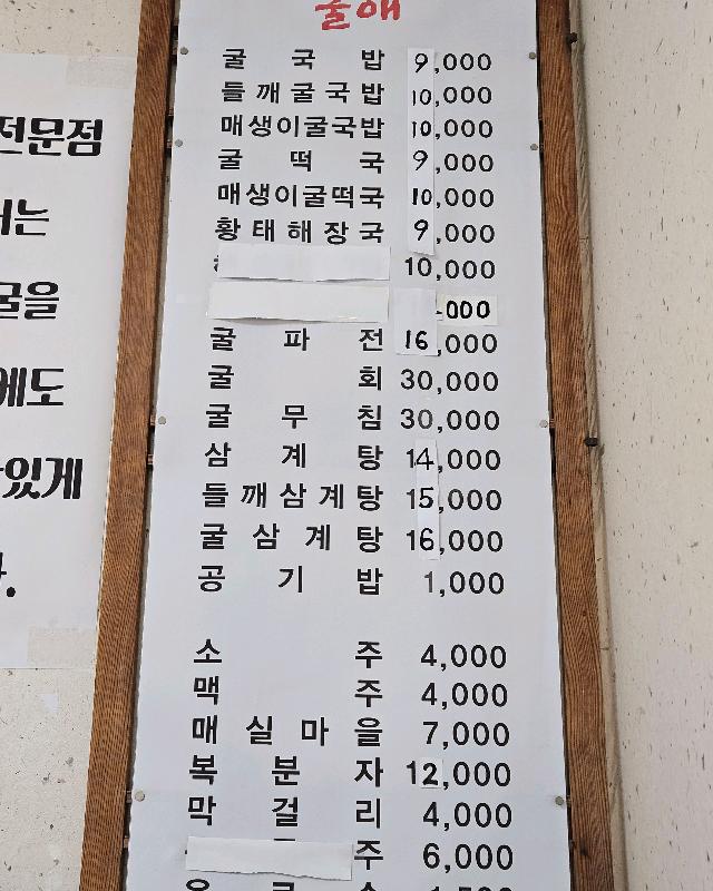 메뉴판을 다시 한번 꼼꼼히 살펴보았다. 굴국밥(9,000원), 매생이굴국밥(10,000원), 굴전(16,000원) 등 가격도 가성비 좋게 느껴졌다. 고민 끝에, 굴국밥과 굴전을 주문했다. 겨울에는 역시 굴국밥이라는 생각과 함께, 굴전의 고소한 풍미도 놓치고 싶지 않았기 때문이다.