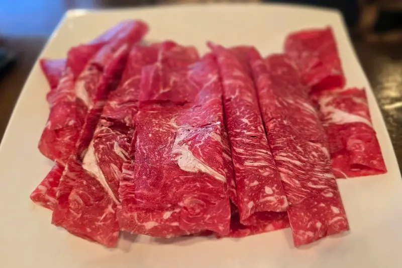 드디어 자리를 안내받고, 본격적인 식사를 시작했습니다. 가장 먼저 샤브샤브 코너로 향했습니다. 신선한 야채와 고기를 듬뿍 담아 육수에 넣고, 보글보글 끓어오르는 모습을 보니 절로 군침이 돌았습니다. 잘 익은 고기와 야채를 건져 소스에 찍어 먹으니, 입안 가득 퍼지는 풍미가 정말 최고였습니다. 육수의 깊은 맛과 신선한 재료의 조화가 환상적이었습니다.