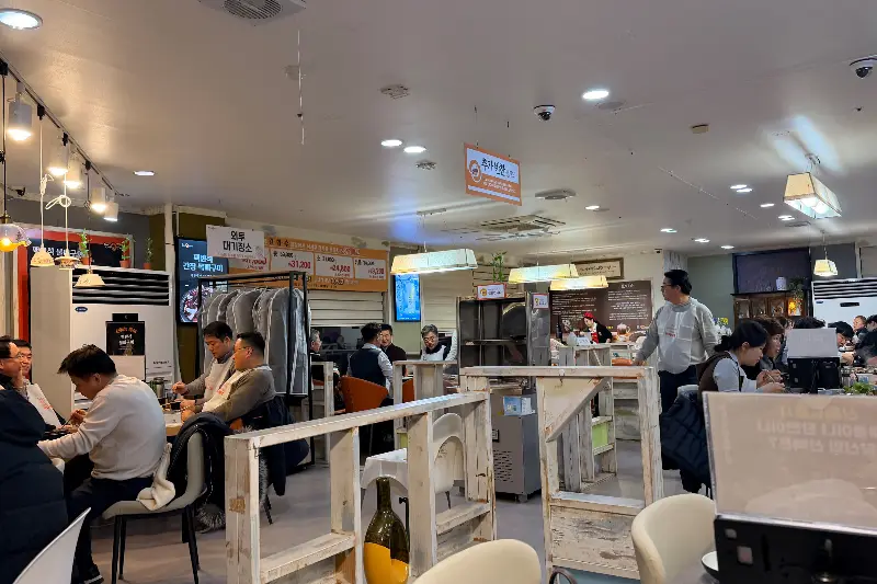 도착하자마자 넓고 쾌적한 매장이 눈에 들어왔다. 테이블 간 간격도 넉넉해서 편안하게 식사를 즐길 수 있을 것 같았다. 밝은 조명 아래 깔끔하게 정돈된 테이블들을 보니, 위생에도 신경을 많이 쓴 듯한 인상을 받았다. 코로나 시국에 안심하고 방문할 수 있는 곳이라는 생각이 들었다.