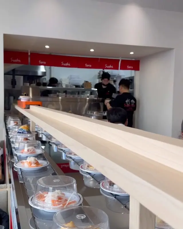 가게 문을 열고 들어서자, 넓고 깔끔한 공간이 눈에 들어왔다. 테이블 간 간격도 넉넉해서 편안하게 식사를 즐길 수 있을 것 같았다. 은은한 조명 아래, 레일 위를 끊임없이 돌아가는 형형색색의 초밥들이 시선을 사로잡았다. 마치 작은 보물섬을 탐험하는 기분이랄까. 사진에서 봤던 것보다 훨씬 쾌적하고 테이블도 넓어서 마음에 들었다. 이제 본격적으로 맛있는 초밥을 즐길 시간!