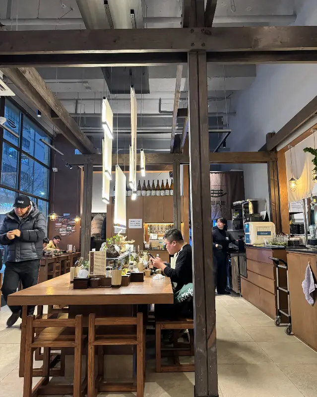 문을 열고 들어서자, 따뜻한 온기가 온몸을 감쌌다. 은은한 조명 아래, 나무 소재를 사용한 인테리어는 편안하고 아늑한 분위기를 자아냈다. 테이블 간 간격도 넉넉해서 혼밥을 즐기기에도, 가족 외식을 하기에도 좋아 보였다. 겉옷을 걸 수 있는 행거가 마련된 점도 세심한 배려가 느껴졌다.