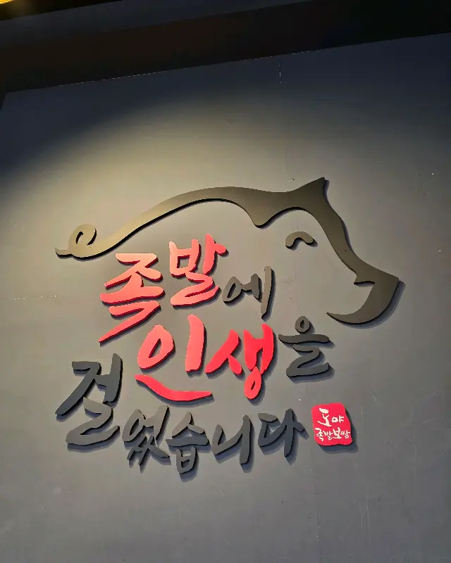 식당 문을 열자 따뜻한 온기가 온몸을 감쌌다. 바깥의 차가운 공기와 대비되어 더욱 포근하게 느껴졌다. 은은한 조명 아래, 편안하게 식사를 즐기는 사람들의 모습이 눈에 들어왔다. 벽면에 걸린 돼지 그림과 함께 “족발에 인생을 걸었습니다”라는 문구가 시선을 사로잡았다. 장인의 혼이 느껴지는 문구에서부터 맛에 대한 기대감이 샘솟았다.