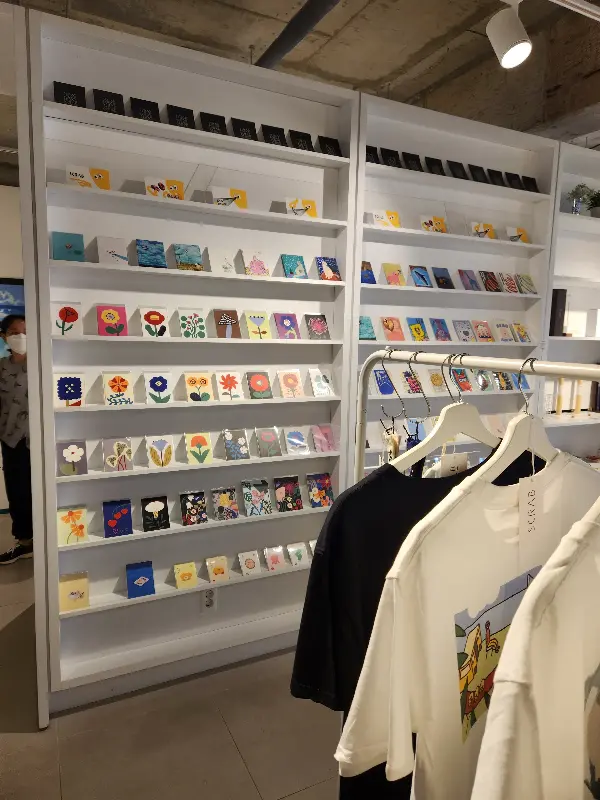 갤러리 카페답게, 단순히 커피를 마시는 공간을 넘어 다양한 볼거리를 제공한다는 점이 인상적이었다. 갤러리 한켠에는 아트샵이 마련되어 있었는데, 이곳에서는 독특한 디자인의 문구류나 액세서리, 그리고 다양한 예술 서적들을 판매하고 있었다. 처럼, 알록달록한 색감의 엽서들이나 개성 넘치는 디자인 소품들을 구경하는 재미가 쏠쏠했다. 마치 보물찾기를 하는 기분으로, 마음에 드는 물건을 하나씩 골라보는 재미에 시간 가는 줄 몰랐다.