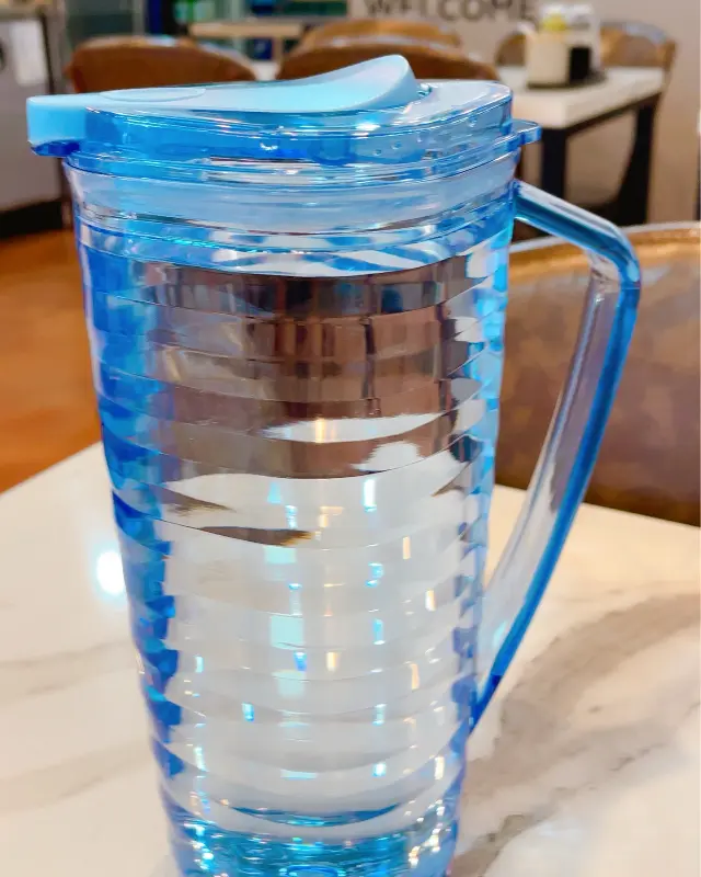 시원한 물이 담긴 파란색 물통이 청량감을 더했다.