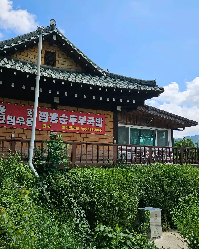 인제 자작나무 숲으로 향하는 길, 하얀 설경을 기대하며 부푼 마음을 안고 있었다. 하지만 아뿔싸, 입산 시간을 넘겨버린 탓에 아쉬운 발걸음을 돌려야 했다. 허탈한 마음을 달래려 주변을 둘러보니, 언덕 위에 자리 잡은 한 식당이 눈에 들어왔다. 청기와 지붕이 왠지 모르게 정겹게 느껴져 이끌리듯 들어섰다.