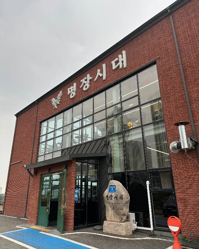 네비게이션에 주소를 찍고 도착하니, 웅장한 외관의 건물이 눈에 들어왔다. 붉은 벽돌 건물에 커다란 통창이 시원하게 뚫려 있는 모습이 인상적이었다. 마치 오래된 공장을 개조한 듯한 느낌도 들었다. 입구에는 ‘명장시대’라는 커다란 간판이 큼지막하게 걸려 있었다. 건물 옆쪽으로는 넓은 주차장이 마련되어 있어 편하게 주차할 수 있었다. 주차를 마치고 카페로 향하는 발걸음이 더욱 가벼워졌다.