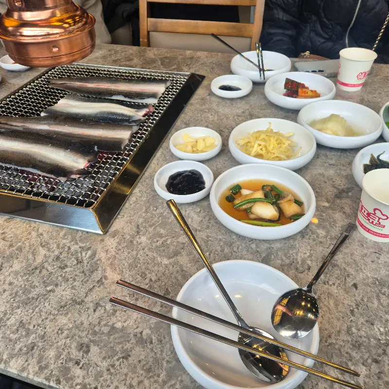 치익- 하는 소리와 함께 장어가 익기 시작했다. 숯불 향이 코를 간지럽히고, 하얀 연기가 피어올랐다. 서서히 노릇하게 변해가는 장어의 모습은 그야말로 예술이었다. 직원분은 능숙한 손놀림으로 장어를 뒤집고 잘라주셨다. 덕분에 나는 편안하게 젓가락만 들고 기다릴 수 있었다.