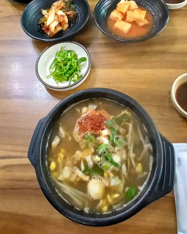 회막국수를 먹다가 살짝 매콤하다 싶을 때, 시원한 해장국 국물을 한 모금 마시니 매운맛이 중화되면서 입안이 깔끔하게 정리되는 느낌이었다. 해장국과 막국수의 조화는 정말 훌륭했다.
