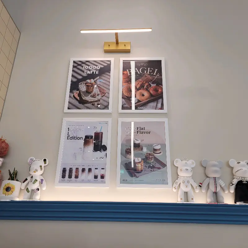 주문 후, 카페 내부를 좀 더 둘러봤다. 한쪽 벽면에는 메뉴 사진과 함께 귀여운 곰인형들이 장식되어 있었다. 은은한 조명 아래 전시된 모습이 마치 작은 갤러리 같았다.