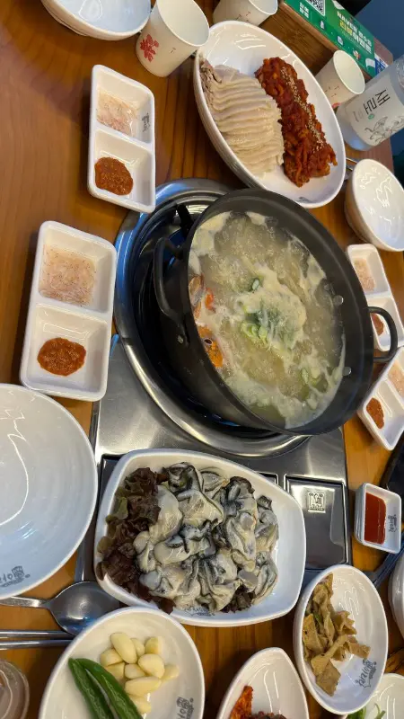 굴보쌈을 정신없이 먹고 있을 때, 서비스로 칼국수가 나왔다. 칼국수에는 꽃게와 조개가 푸짐하게 들어있었다. 칼칼하고 시원한 국물 맛이 정말 끝내줬다. 면발도 쫄깃쫄깃해서 식감이 좋았다. 굴보쌈과 함께 칼국수를 먹으니, 느끼함도 싹 가시는 기분이었다.