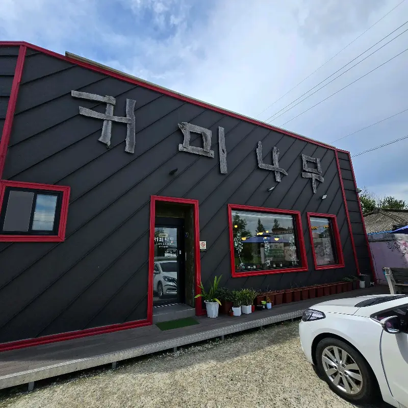 드디어 ‘괴미나무’라는 간판이 눈에 들어왔다. 짙은 회색 벽돌에 붉은색 테두리로 포인트를 준 외관은, 주변의 풍경과는 조금 이질적이면서도 묘하게 어울렸다. 마치 시골 마을에 숨겨진 보석 같은 느낌이랄까. 통유리창 너머로 보이는 아늑한 내부 모습은 얼른 들어가 보고 싶게 만들었다.