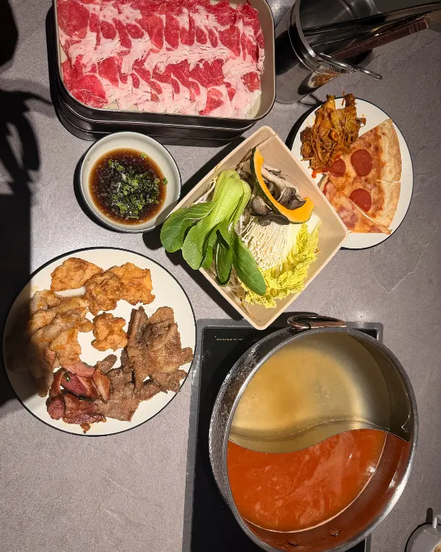 육수가 끓기 시작하자, 샐러드바에서 가져온 야채들을 듬뿍 넣었다. 알싸한 마라 향이 코를 자극하며 식욕을 돋우었다. 끓는 육수 속에서 야채들이 숨을 죽이고, 국물이 점점 진해지는 모습은 보기만 해도 즐거웠다. 드디어 고기를 넣을 차례. 젓가락으로 한 점 집어 육수에 살짝 담갔다. 얇게 썰린 고기는 금세 익었고, 곧바로 입 안으로 가져갔다.