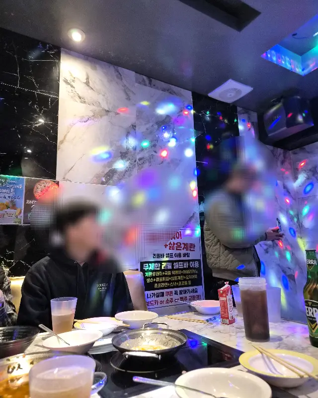 네온사인이 반짝이는 거리를 지나 준코에 들어서자, 활기 넘치는 분위기가 나를 반겼다. 로비는 이미 흥겨운 노랫소리와 웃음소리로 가득 차 있었다. 직원분은 밝은 미소로 나를 맞이하며 예약 확인을 도와주셨다. 첫인상부터 기분이 좋아지는 친절함이었다. 룸으로 안내받는 동안, 복도에 울려 퍼지는 다양한 장르의 음악들이 기대감을 더욱 고조시켰다. 마치 시간 여행을 떠나는 듯한 설렘이랄까.