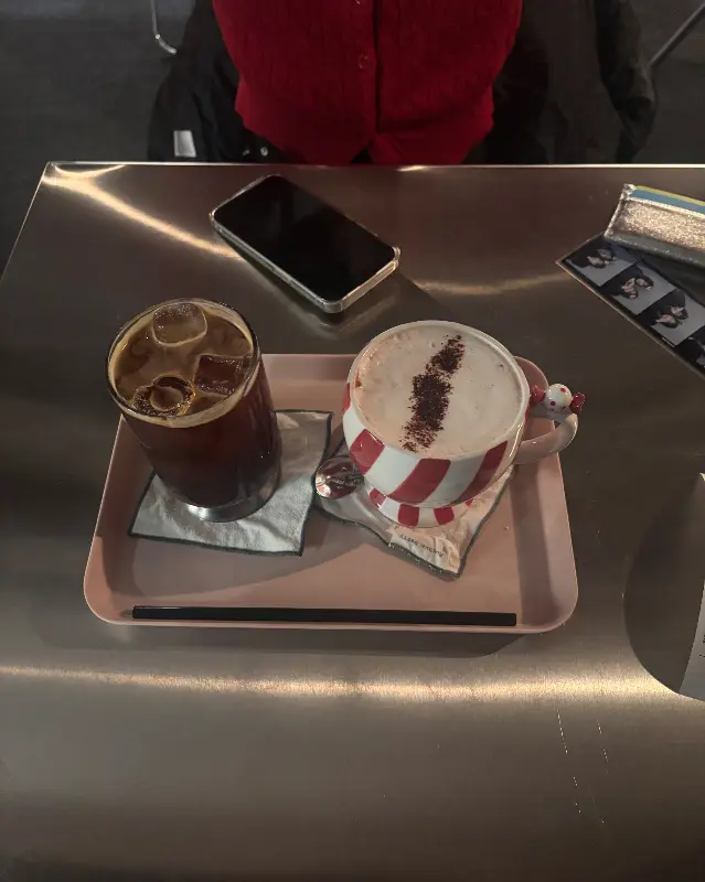 자리를 잡고 메뉴판을 살펴보니, 다양한 커피 메뉴와 함께 디저트 종류가 눈에 띄었다. 특히 시그니처 메뉴인 크림라떼와 생딸기라떼, 그리고 ‘두쫀쿠’라는 독특한 이름의 디저트가 궁금증을 자아냈다. 고민 끝에 나는 크림라떼를, 친구는 딸기청 요거트를 주문하고, 디저트로는 두쫀쿠와 티라미수를 선택했다. 주문 후, 카페 내부를 둘러보았다. 아기자기한 소품들과 예쁜 잔들이 눈길을 사로잡았고, 곳곳에 마련된 포토존은 사진 찍기 좋아하는 사람들에게는 천국과도 같았다.