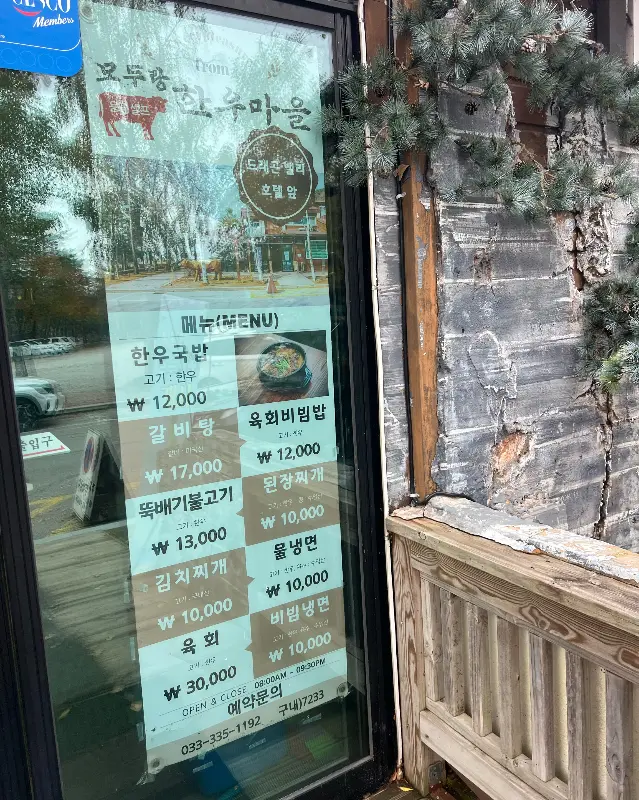 스키 시즌을 맞아 용평으로 향하는 길은 언제나 설렘으로 가득하다. 하얀 설원을 가르며 질주하는 상상만으로도 온몸에 짜릿한 전율이 느껴진다. 하지만 스키만큼이나 나를 들뜨게 하는 것이 있었으니, 바로 용평에서 빼놓을 수 없는 맛집, “모두랑한우마을”에서의 식사다.