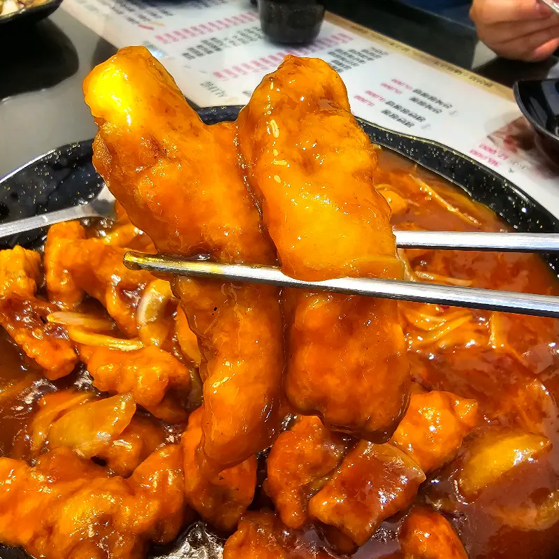 젓가락으로 탕수육 한 조각을 집어 들었다. 겉은 바삭하고 속은 촉촉한 탕수육은 입안에서 살살 녹는 듯했다. 달콤한 소스와 바삭한 튀김옷의 조화는 환상적이었다. 특히 탕수육에 들어간 양파는 아삭한 식감을 더해줘 더욱 맛있게 즐길 수 있었다. 탕수육을 먹는 동안, 친구들의 감탄사가 끊이지 않았다.