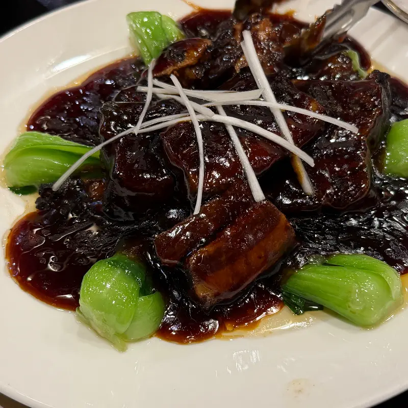 동파육 맛집이라는 소문을 익히 들어 알고 있었기에, 런치 코스에 포함된 동파육에 대한 기대감이 컸다. 큼지막하게 썰린 돼지고기 위에 윤기가 자르르 흐르는 모습은 보기만 해도 군침이 돌았다. 젓가락으로 살짝 집어 올리니 부드러움이 그대로 느껴졌다. 입안에 넣으니 정말 부드럽고 야들야들했다. 짜지 않고 은은한 단맛이 감돌아 더욱 좋았다. 함께 나온 청경채의 아삭한 식감은 환상적인 조화를 이뤘다.