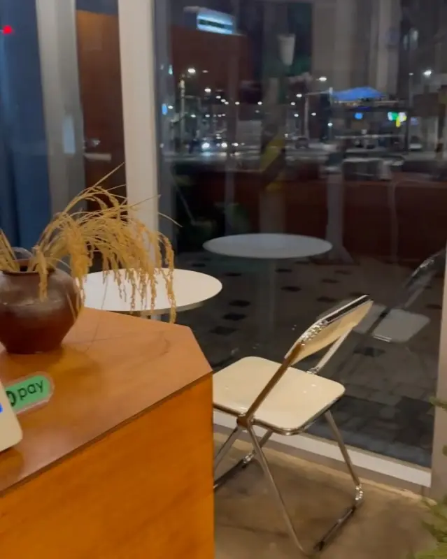 문을 열고 들어서자, 예상대로 독특한 분위기가 나를 맞이했다. 카페 내부는 55년 된 정미소의 흔적을 고스란히 간직하고 있었다. 높은 천장과 넓은 공간은 시원한 개방감을 선사했고, 통유리창 너머로는 탁 트인 옹포 바다가 한눈에 들어왔다. 마치 부산 청사포나 일본 가마쿠라의 풍경을 떠올리게 하는 멋진 뷰였다. 군더더기 없이 깔끔한 인테리어와 곳곳에 놓인 곡물 장식들은 정미소의 역사를 은근하게 드러내고 있었다. 오래된 공간의 매력과 현대적인 감각이 조화롭게 어우러진 모습이 인상적이었다.