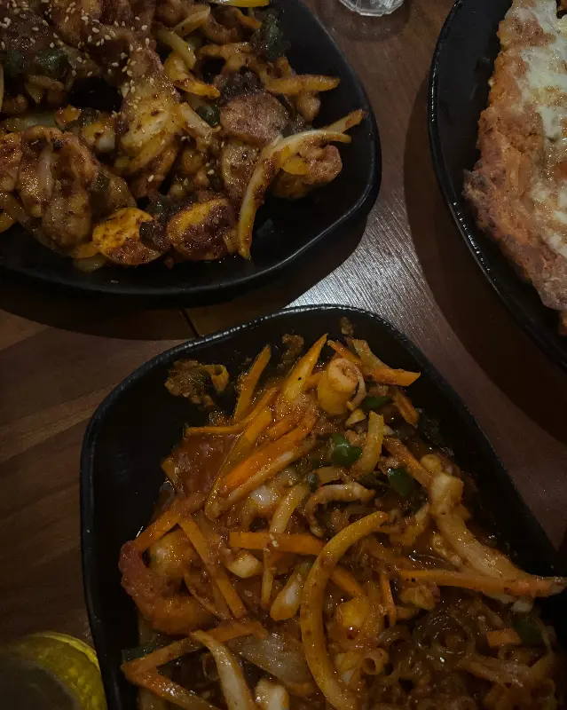 먼저 낙지볶음부터 맛을 봤다. 젓가락으로 낙지 한 점을 집어 입에 넣는 순간, 매콤하면서도 달콤한 양념이 입안 가득 퍼져 나갔다. 탱글탱글한 낙지의 식감은 씹는 재미를 더했고, 신선한 채소들과의 조화도 훌륭했다. 땀을 뻘뻘 흘리면서도 멈출 수 없는 중독적인 맛이었다.