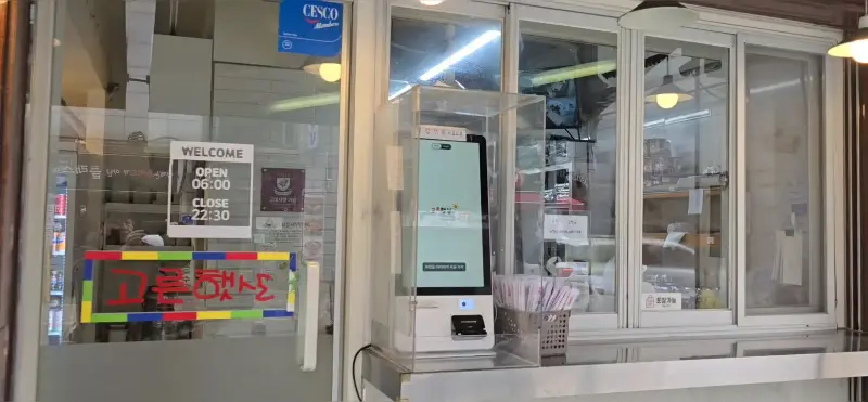 밖에서 간편하게 주문할 수 있는 키오스크가 인상적이다.