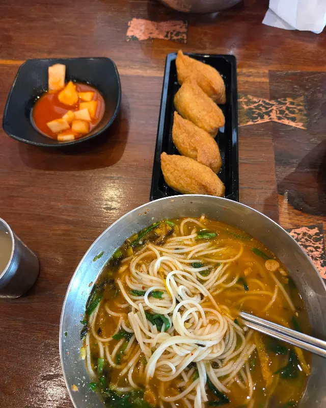 특히 이 집은 땡초 다진 양념을 함께 제공하는데, 멸치 육수의 깊은 맛에 매콤함이 더해지니 정말 환상적인 조화였다. 땡초를 국수에 넣어 먹어도 맛있고, 유부초밥 위에 올려 먹어도 정말 꿀맛이었다. 직원분들이 친절하게 땡초 활용법을 알려주신 덕분에 더욱 맛있게 즐길 수 있었다.