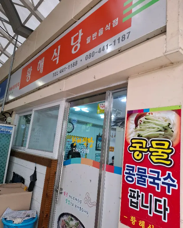 식당 앞에 도착하니, 낡은 간판에서 세월의 흔적이 느껴졌다. 붉은색 바탕에 흰 글씨로 쓰인 ‘황해식당’이라는 이름이 정겹게 다가왔다. 간판 옆에는 ‘일반음식점’이라는 문구가 함께 적혀 있었고, 전화번호가 빼곡하게 적혀 있었다. 마치 오랜 친구를 만난 듯한 푸근함이랄까. 유리문에는 “좋은 재료와 넉넉한 정성으로 모시겠습니다”라는 문구가 쓰여 있었는데, 그 문장처럼 따뜻한 식사를 할 수 있으리라는 기대감이 샘솟았다.
