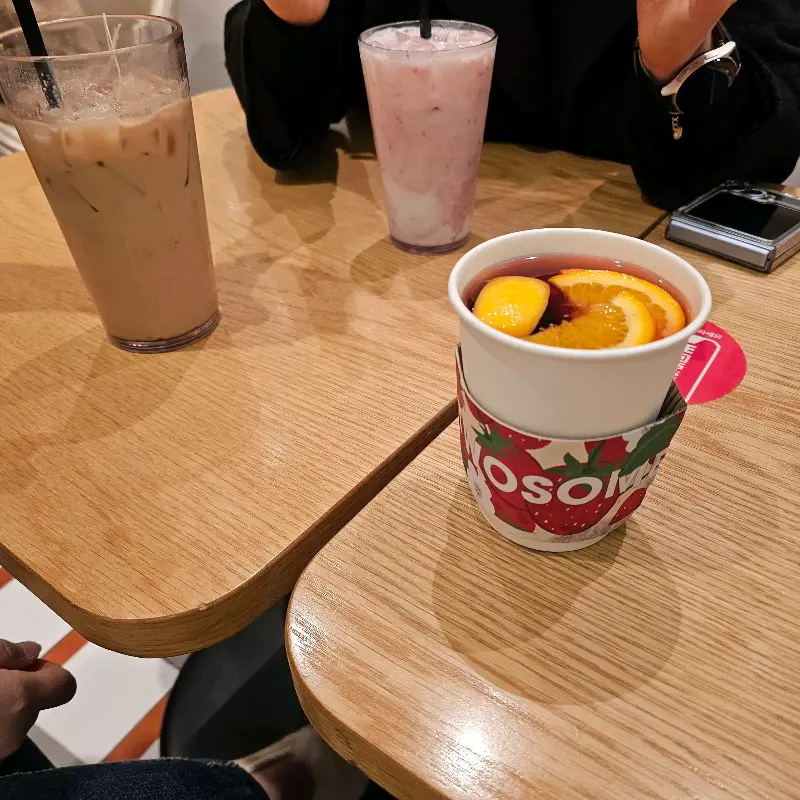 드디어 주문한 메뉴가 나왔다. 먼저, 나의 아메리카노. 투썸 특유의 초콜릿 향이 코를 간지럽혔다. 한 모금 마시니, 쌉쌀하면서도 달콤한 맛이 입안 가득 퍼져 나갔다. 역시 투썸 아메리카노는 실망시키는 법이 없다. 친구의 블루베리 요거트는 상큼하면서도 부드러운 맛이 일품이었다. 요거트 파우더가 바뀌었다는 소문이 있었지만, 여전히 친구의 마음 속 원탑 음료라고 한다.