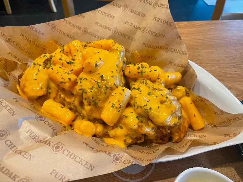 주문 후, 테이블에는 기본으로 치킨무와 함께 앙증맞은 떡 튀김이 제공되었다. 갓 튀겨져 나온 떡 튀김은 겉은 바삭하고 속은 쫄깃했다. 특히 함께 제공된 분홍색 소스에 마요네즈를 살짝 섞어 찍어 먹으니, 그야말로 꿀맛이었다. 메인 메뉴가 나오기 전부터 입맛이 제대로 돋워지는 느낌이었다. 이런 소소한 서비스 하나하나가 고객을 감동시키는 법이지.