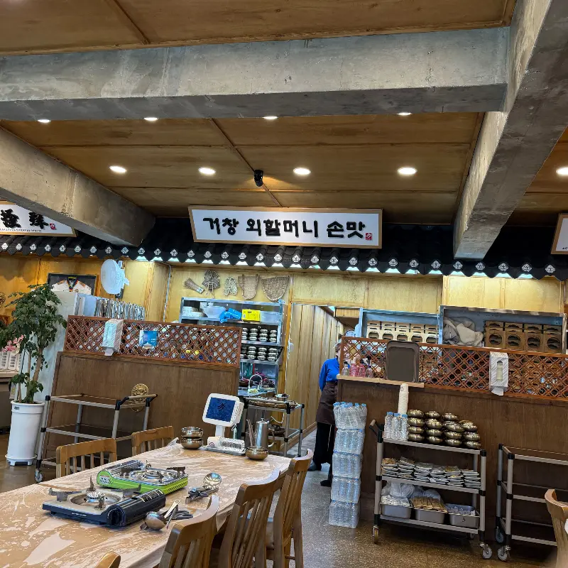 수승대의 정취를 만끽하고 돌아오는 길, 든든한 한 끼 식사를 위해 ‘다우리밥상’으로 향했다. 거창 지역민들의 추천이 자자한 곳이라, 방문 전부터 기대감이 컸다. 특히 부모님을 모시고 가기 좋은 곳이라는 평이 많아 더욱 설레는 마음으로 발걸음을 옮겼다. 넓은 주차장에 차를 대고 안으로 들어서니, 깔끔하고 고급스러운 인테리어가 눈에 띄었다. 은은한 조명 아래 펼쳐진 넓은 공간은 편안함과 안정감을 주었고, 테이블 간 간격도 넉넉해서 가족 외식이나 단체 모임에도 안성맞춤이라는 생각이 들었다.