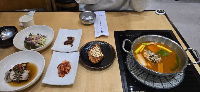 주문을 마치자, 기다렸다는 듯 밑반찬들이 쏟아져 나왔다. 신선한 해산물은 기본이고, 샐러드, 튀김, 간장게장까지 푸짐한 구성에 입이 떡 벌어졌다. 특히, 간장게장은 짜지 않고 감칠맛이 풍부해서 밥 한 공기를 뚝딱 해치울 뻔했다. 짭쪼름하면서도 녹진한 게장 속살을 발라먹으니, 입맛이 확 돋았다.