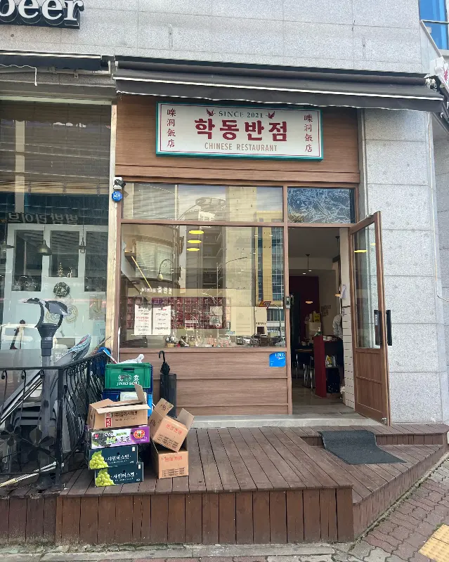 정갈한 느낌의 학동반점 외관, 맛에 대한 기대감을 높인다.