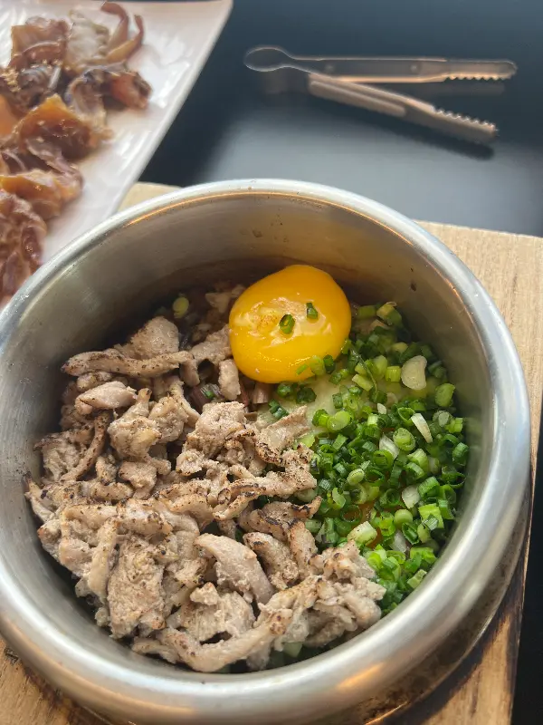 먼저 흑돼지 솥밥. 흑돼지는 보기와는 달리, 특제 양념과 어우러져 깊은 풍미를 자랑했다. 밥과 함께 입안에 넣으니, 짭짤하면서도 달콤한 양념이 흑돼지의 고소함을 한층 끌어올렸다. 솥밥 안에는 신선한 채소들도 가득 들어있어 다채로운 식감을 즐길 수 있었다. 특히 톡톡 터지는 메추리알은 간장 양념이 잘 배어 있어, 밥과 함께 먹으니 환상적인 조화를 이루었다.